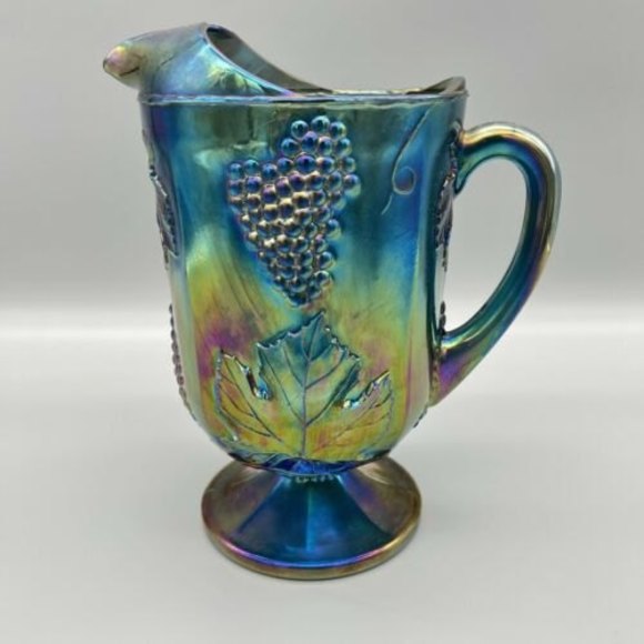 Indiana Glass Art Indiana Glass Blue Purple Iridescent Carnival Glass Pitcher Harvest Grape Euc Poshmark